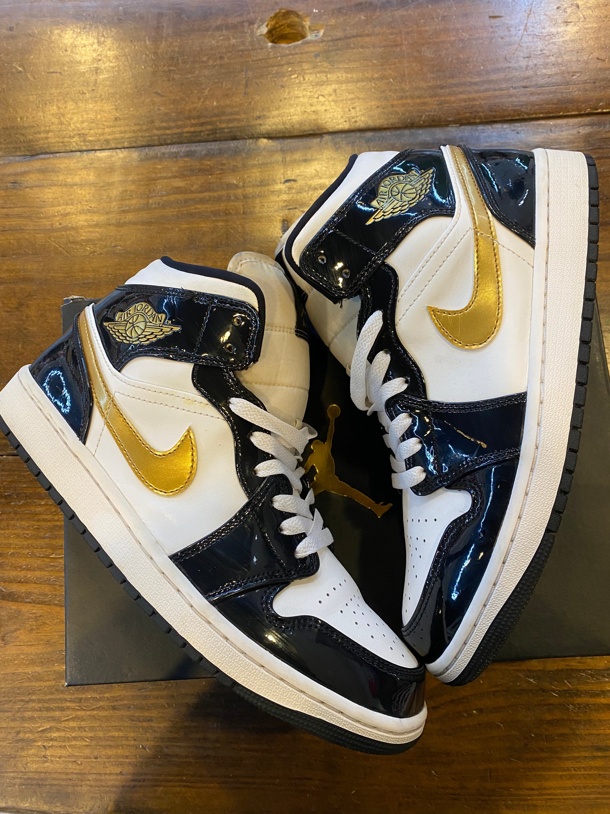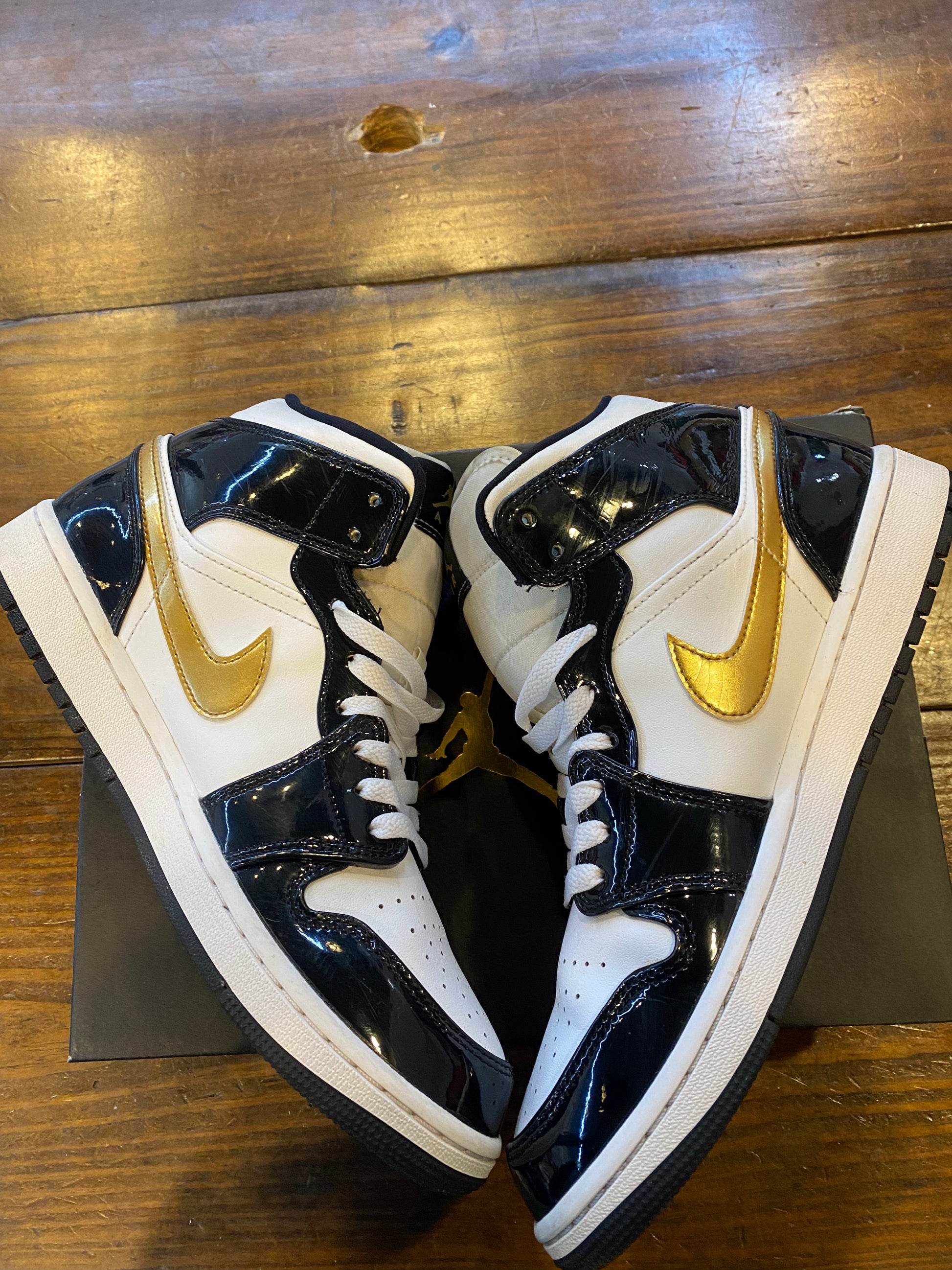 Jordan 1 Mid Patent SE Black Gold PRE OWNED