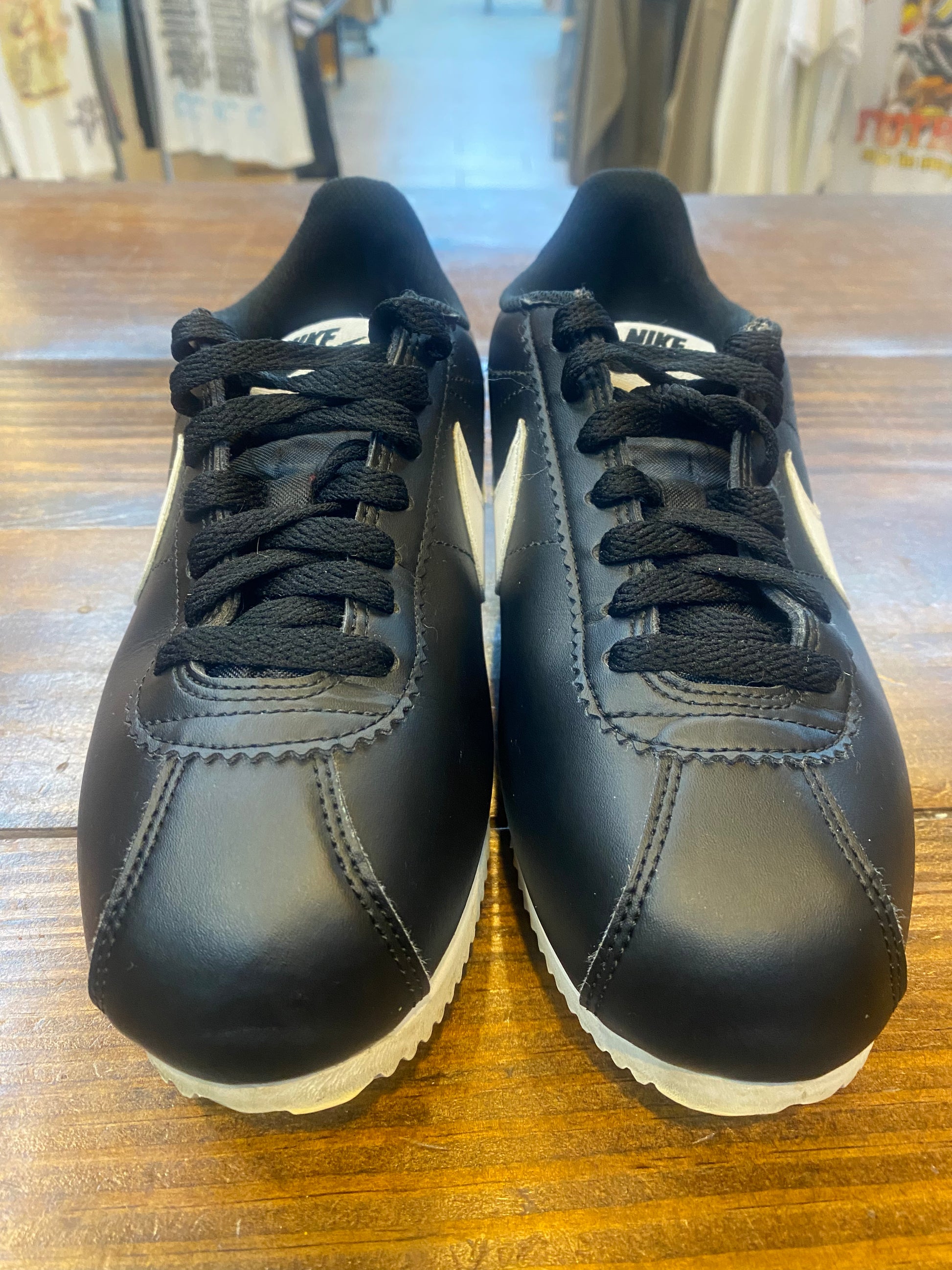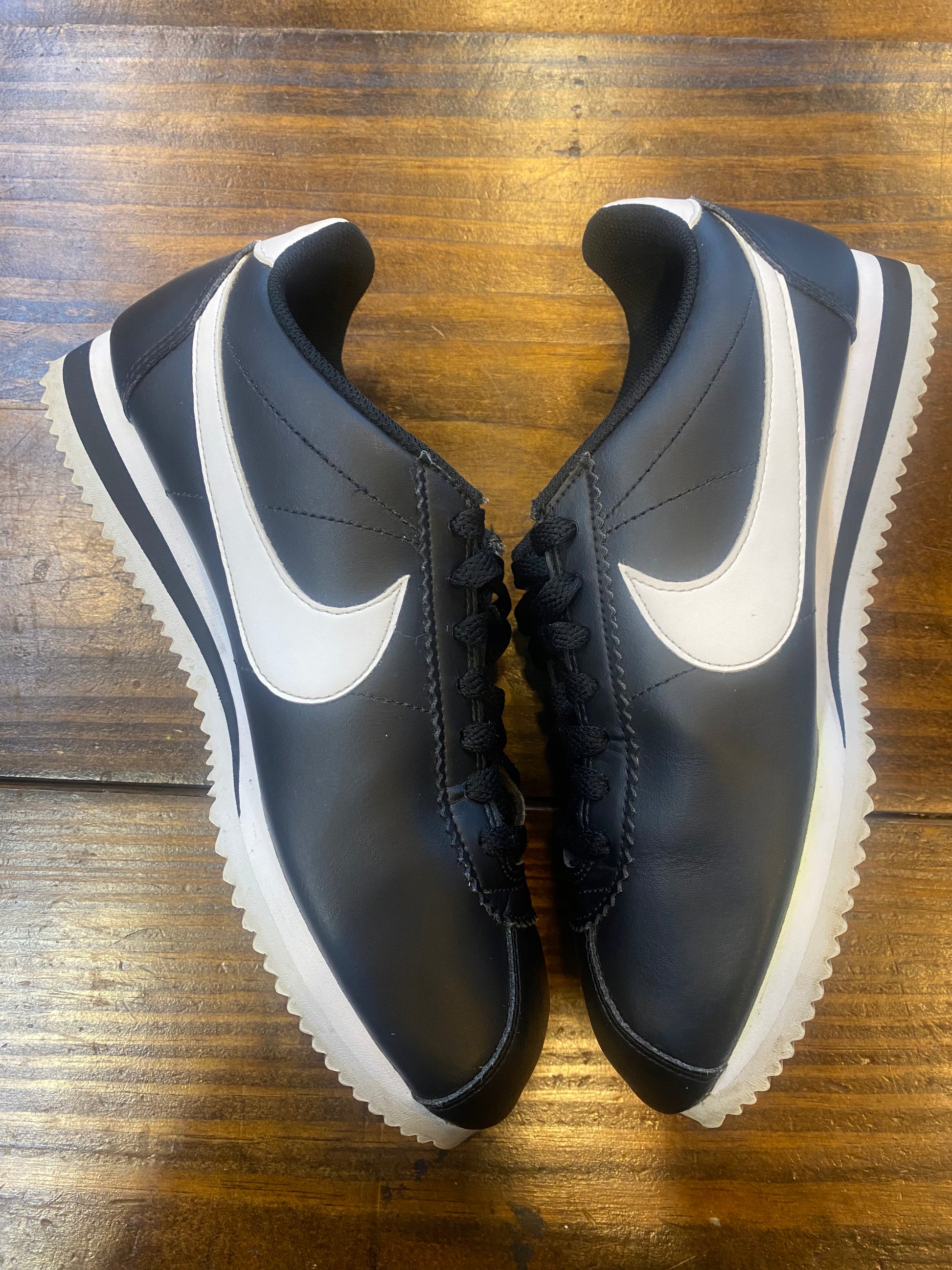 Wmns Classic Cortez Leather Black White PRE OWNED